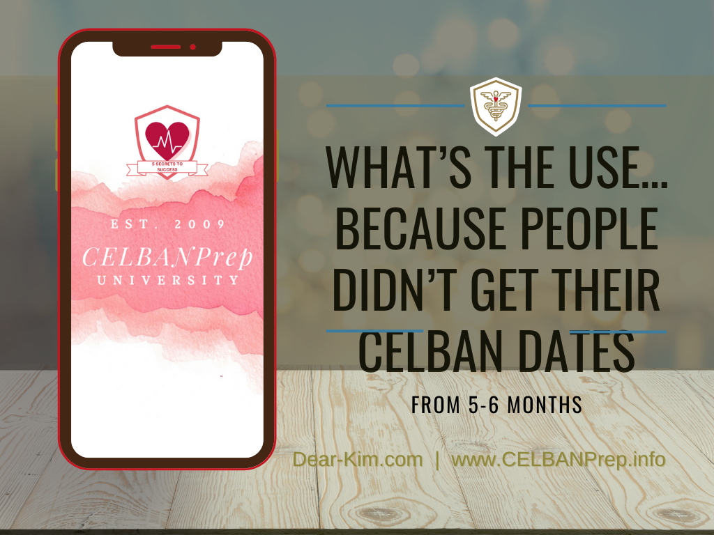 When you read this, in 2021 or thereafter, consider this: this post was created in April of 2014. At that time the owners of the CELBAN realized that the administration of the exam needed improvements because of the long wait times. At that time IENs were on waitlists of over 6 months. As a result, the owners shut it down. The CELBAN exam was not offered for more than 6 months as they searched for new administrators that could handle the complexities of a global market.