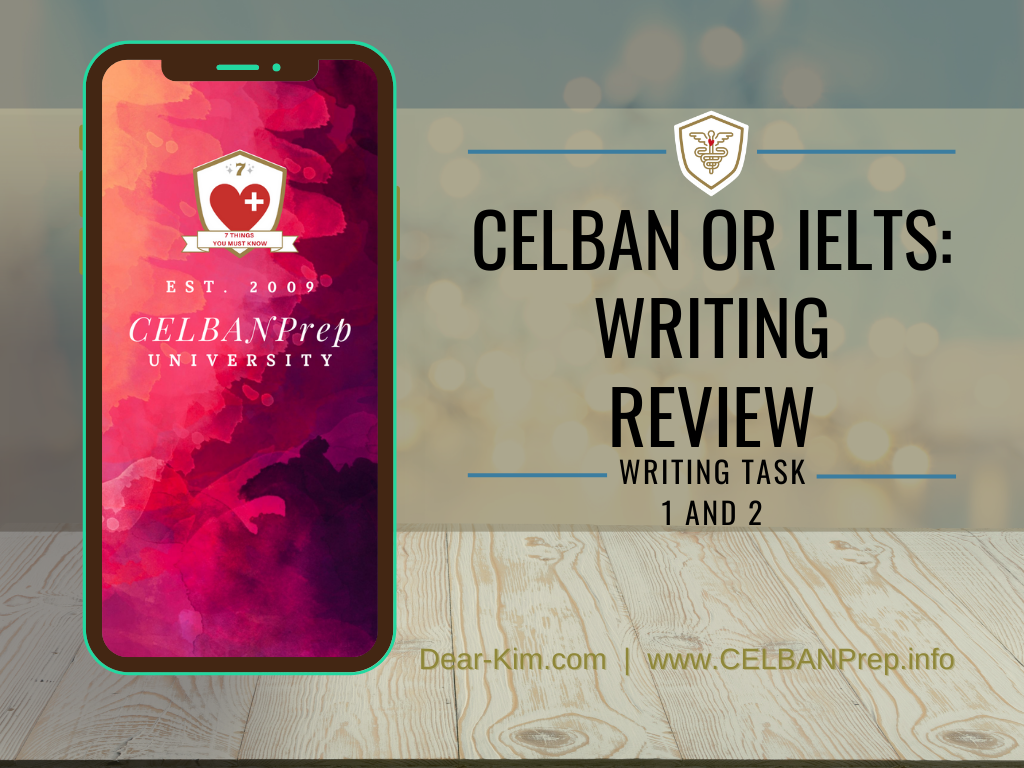 Throughout the years I have developed many CELBAN online courses, CELBAN online classes, CELBAN material and CELBAN reviewers specifically to help people prepare for both Task 1 and Task 2 of the writing portion of the CELBAN.