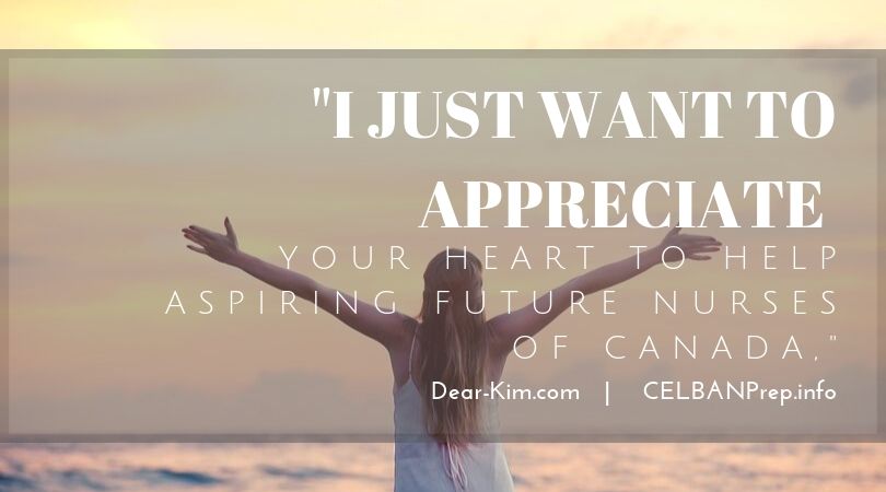 I wrote, ” I so appreciate your comment! Yes, focusing on the grammar is sooo very important! It is the greatest weakness preventing Internationally Educated Nurses from getting an acceptable score on the CELBAN: not only in writing but also in speaking and reading!”
