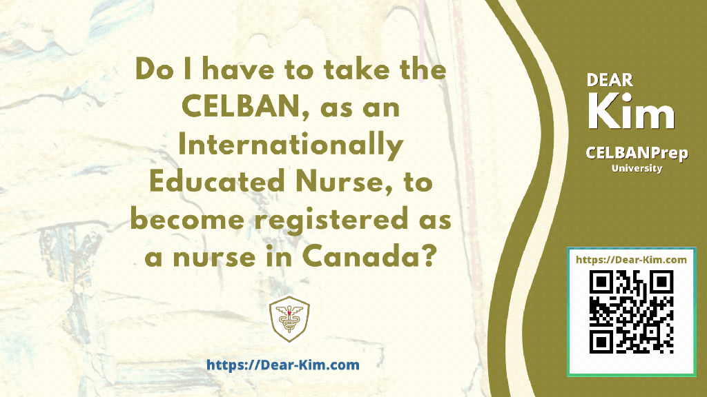 However, most regulatory bodies require that IENs pass a recognized English language test, such as the CELBAN, in order to become registered. It’s important to check the specific requirements for the province or territory where you want to practice, as well as with the regulatory body, to determine if the CELBAN is a requirement for you.