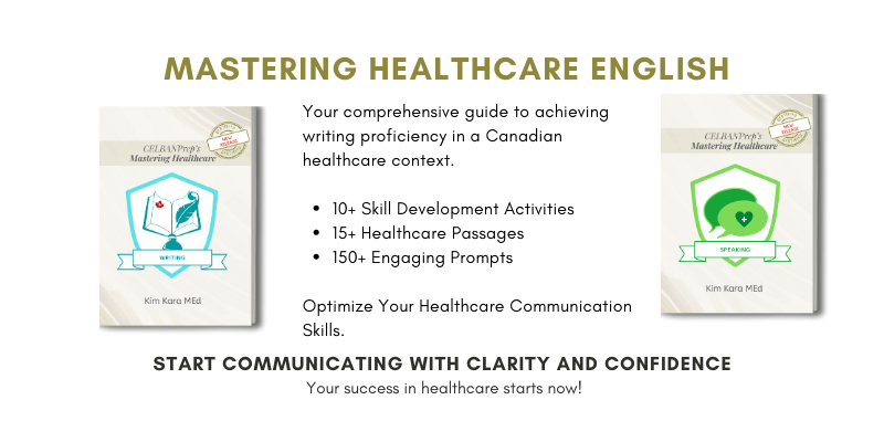 If you are aspiring to perfect your healthcare writing skills, particularly for the Canadian context, then ‘CELBANPrep’s Mastering HealthCare Writing‘ by Kim Kara is an indispensable resource. Dive into this guide on Amazon to enhance your writing proficiency in the healthcare field.